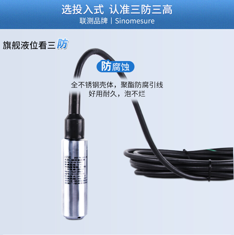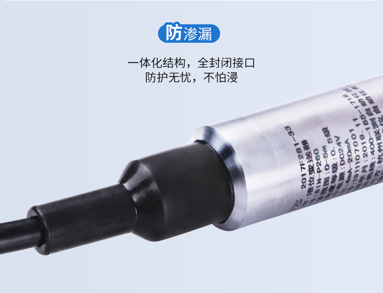 SIN-P260/P2600投入式液位變送器由高性能擴(kuò)散硅壓阻式壓力傳感器作為測(cè)量元件,把與液位深度成正比的液體靜壓力準(zhǔn)確測(cè)量出來(lái),并經(jīng)過(guò)信號(hào)調(diào)理電路轉(zhuǎn)換成標(biāo)準(zhǔn)(電流或電壓)信號(hào)輸出,建立起輸出信號(hào)與液體深度的線性對(duì)應(yīng)關(guān)系,實(shí)現(xiàn)對(duì)液體深度的測(cè)量。